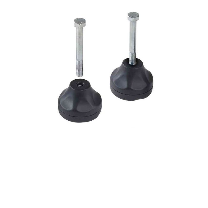 Use the Clamping Kit to secure the Kapex sliding compound miter saw to the Festool Multifunction Table. Hex bolts drop into the Kapex deck base as captured nuts, and are easily secured beneath the MFT with the oversized knobs.