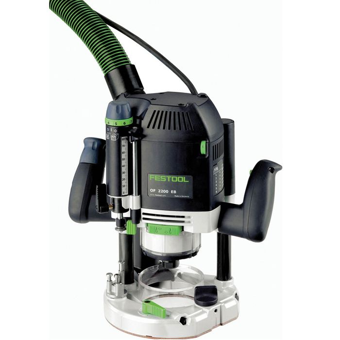 Festool's OF 2200 router offers the most powerful low-end torque, highest routing precision, and top ergonomic comfort. Producing a massive 2200 watts of power, even routing in the thickest, hardest materials is performed to perfection. The double column clamping system guarantees accurate routing height, and all important controls are within easy reach to allow both hands to remain on the machine during use. When used with the side stop or guide rail, the offset guide rods ensure easier routing in difficult materials or for long periods. With a Festool Dust Extractor, up to 99% of all chips are extracted during edge routing. The router is covered by Festool's comprehensive 3-year warranty.