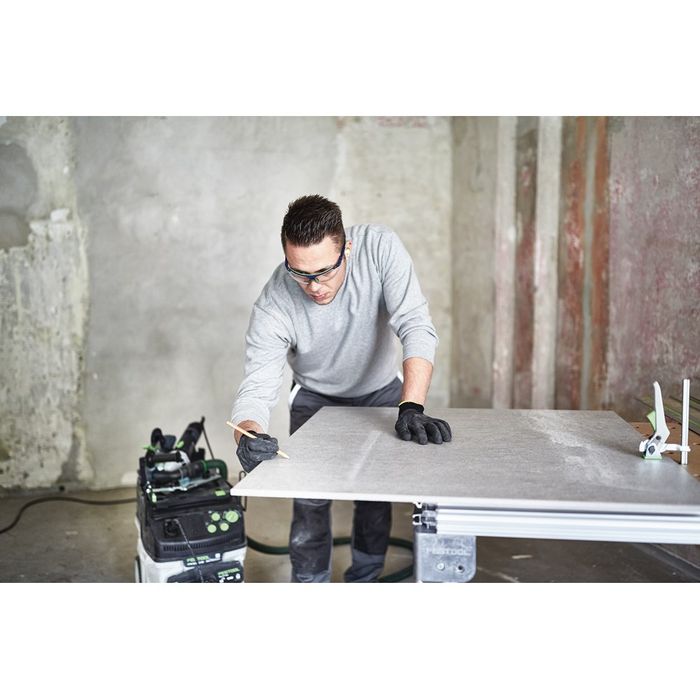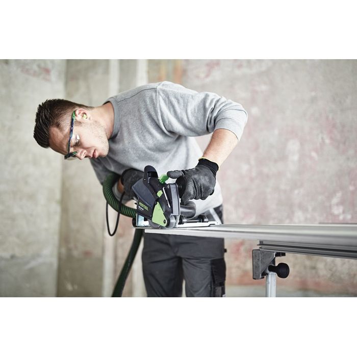 The use of a Festool dust extractor is highly recommended, as the dust created when cutting and grinding concrete is hazardous. The combination of the saw and Festool dust extractor will vastly reduce the amount of dust needing to be cleaned up after cutting.