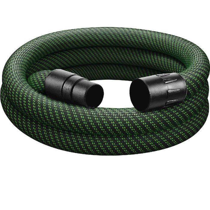 Designed for use with Festool Dust Extractors, temperature resistant to +70° C, features a rotating adapter and tool end connector. Festool's smooth antistatic hose design helps you work cleaner by preventing dust from accumulating on the exterior of the hose. Featuring a smooth outer skin for significantly improved handling, longer life and higher suction power. You'll also work more efficiently with a system that prevents clogging due to particulate build up inside the hose. Work more safely by preventing static discharge and shocks. A durable, pliable design withstands heavy use and prevents kinking for longer service life and more efficient work.