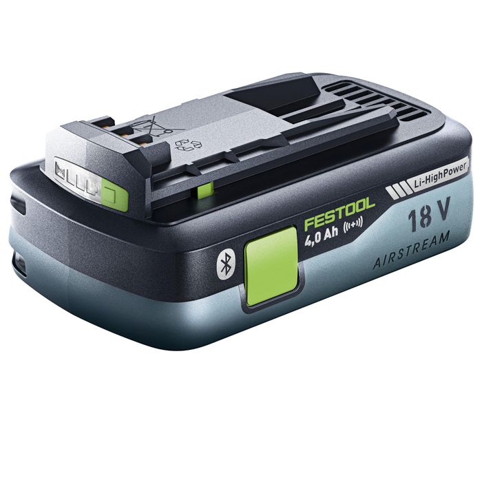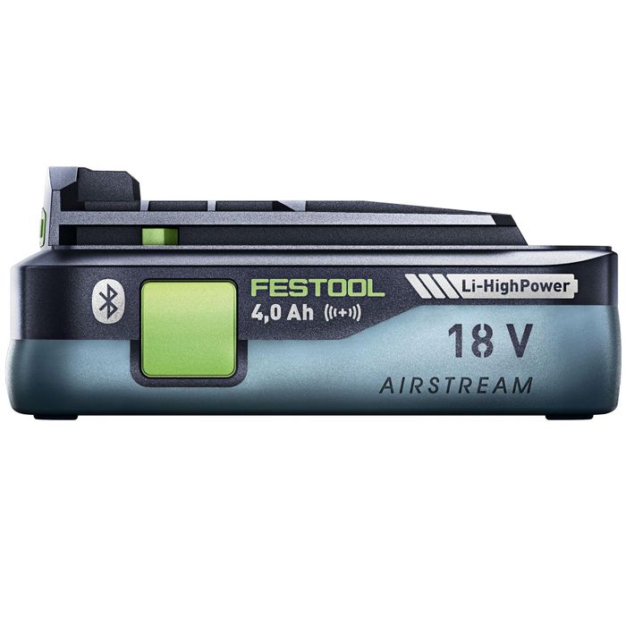 * Bluetooth® lithium-ion (Li-ion) battery pack with AIRSTREAM function for all Festool 18 V cordless tools (except CXS, TXS, ETSC 125, RTSC 400, DTSC 400)