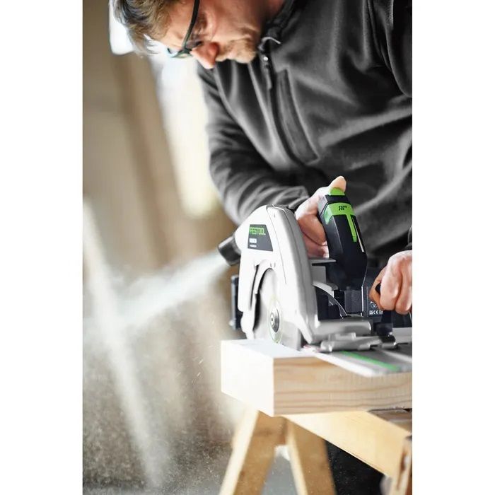 The HK 85 is ideal for trimming and cutting of solid beams, frames, form-work that require a large cutting depth up to 85mm. The versatile HK 85 can be transformed from circular saw to groove cutter with an optional groove cutting accessory (sold separately). When sawing with a Guide Rail the cutting edge follows the scribe mark edge exactly for robust results even when mitre cutting. Switch from cutting full sheets to plunge cuts for sink cut outs or vents in seconds.
