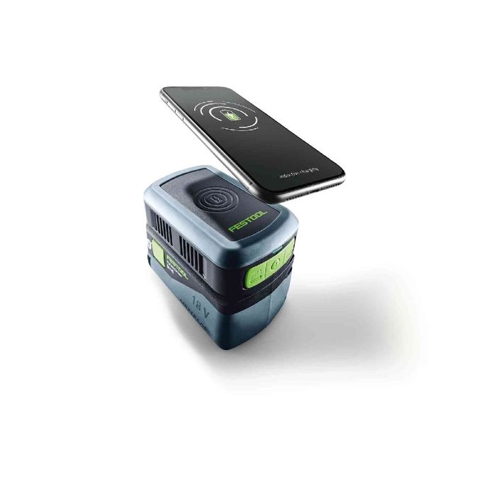 Be independent of classic power sources: When combined with a charged Festool 18 V battery pack, it is possible to charge your mobile phone even when there are no sockets nearby