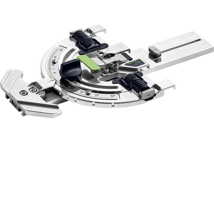 The angle stop for the guide rail – for precise and fast angled cuts. Angles of -60° to +60° can be set with repeat accuracy and high precision. The angle stop therefore offers a wide range of applications and full flexibility. Thanks to the quick-clamping lever, the angle stop is attached to the guide rail in an instant.