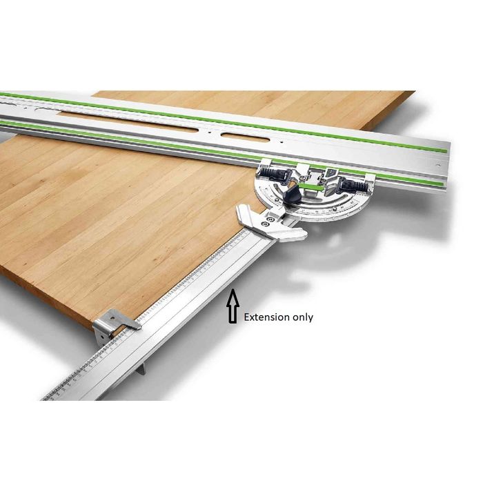 The FS-WA angle stop can be extended using a guide extension with a scale and an adjustable stop This allows cuts to be easily made to size with repeat accuracy.