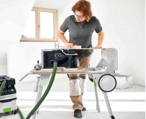 Use folded at ground level or at an ergonomic working height of 900mm in combination with the CSC SYS 50 cordless table saw