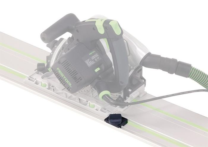 Affixing to the rib, or guide on top of the Festool FS Guide Rail, the Limit Stop can be used to provide secure stop points for repetitive cutting and for routing with most Festool routers. With a seamless fit to the rear of the TS plunge cut saw's sole plate, the Limit Stop also helps reduce the risk of kickbacks for plunge cut starts.