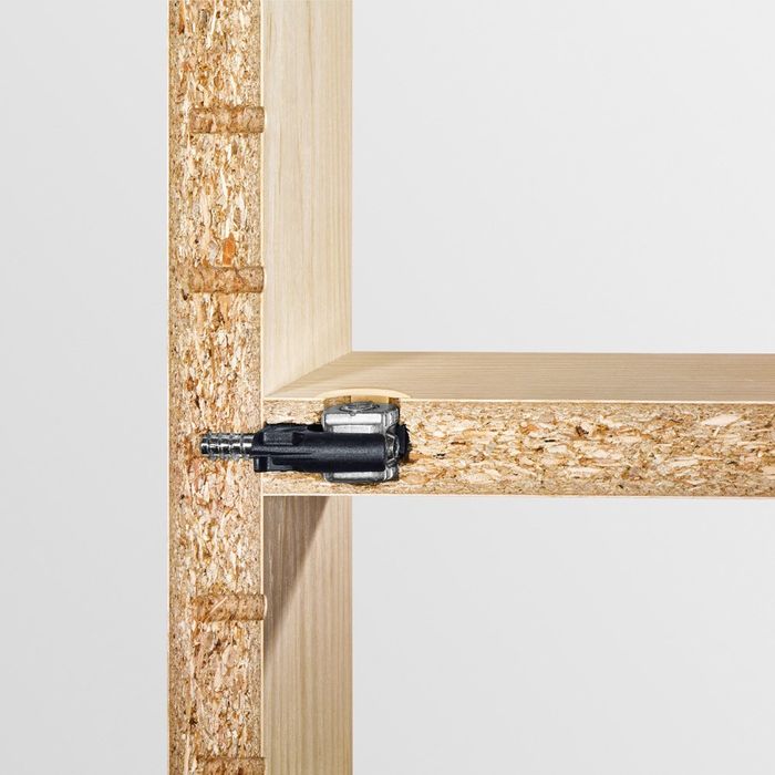 For use with the DOMINO DF 500 Joining Machine. DOMINO connector fasteners allow you to smoothly assemble and disassemble furniture panels and more with minimal time and effort. Festool's LR 32 adjustable shelving system allows quick and precise hole placement without time consuming measuring and marking. The DOMINO LR32 Corner Connector is positioned both in the cupboard panel in a 5 mm hole and the base of the structure with the use of the DOMINO DF 500 Joining Machine. The connectors' large tightening distance and long bolts make furniture assembly significantly easier. Cupboard assembly is therefore no problem, and you can do it easily on your own. The flush-screwed fixture elements protect each furniture component from being scratched. Routing and cutting tolerances of up to 1.4 mm are compensated for without problems by the fixture. The new detachable DOMINO basic structure connectors and furniture connectors are perfectly suited for a panel thickness of 18 mm to 28 mm.